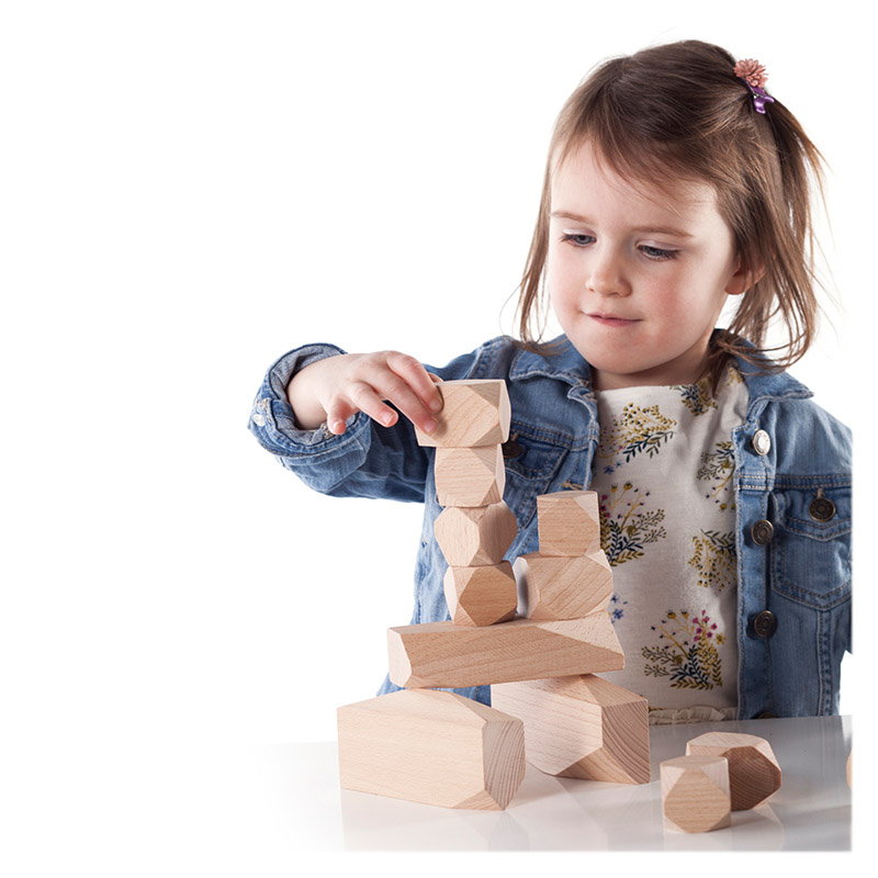 - Inspirate de blocurile inalte de piatra din care au fost realizate monumentele megalitice preistorice, aceste pietre geometrice din lemn stimuleaza curiozitatea copiilor pentru crearea de structuri antice folosind materiale naturale, organice.