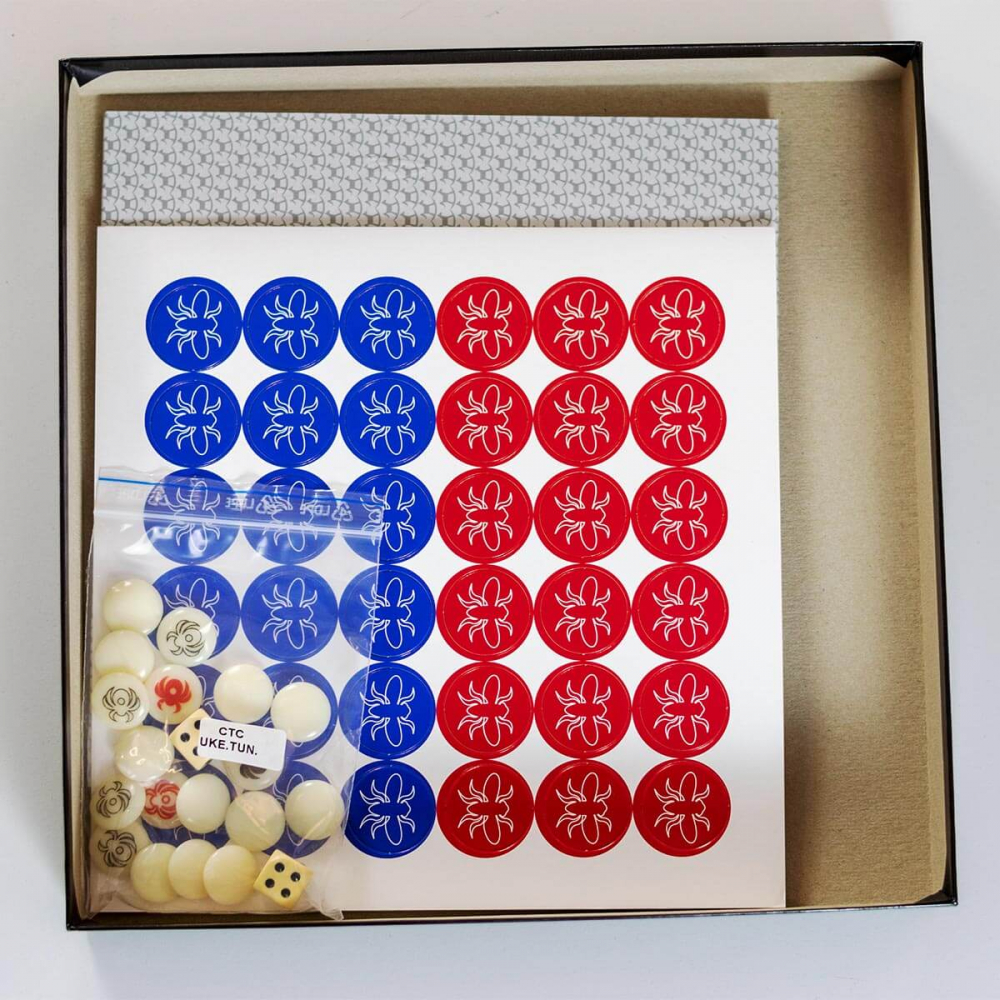 Fiecare jucator trebuie sa isi plaseze paianjenii la intersectiile panzei de pe tabla de joc si sa “captureze” cat mai multe muste.