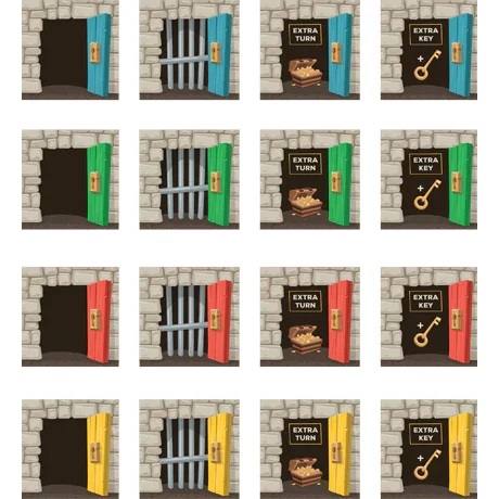 • 8 piese de joc sub forma de usi baricadate cu zabrele (cate 2 din fiecare culoare)