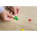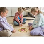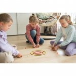 Incercati sa castigati puncte tragand cu ochiul in inele. :-) Aseaza cercurile pe podea sau pe un covor. Interiorul fiecarui inel valoareaza un anumit numar de puncte. Imparte fiecarui jucator sase discuri de aceeasi culoare si un disc mare. Incearca sa trimiti discurile mici colorate in interiorul cercurilor, apasandu-le cu discul mare.Cine marcheaza cele mai multe puncte?