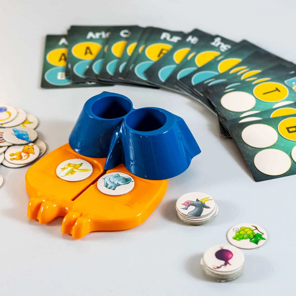 Cutia conține: 56 jetoane de joc cu două fețe, 64 cărți de joc cu două fețe și bufnița Buboo care distribuie jetoanele de joc printr-un mecanism special.