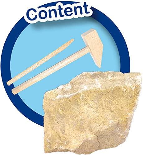 Contine: stanca cu schelet T-rex; ciocan de lemn; dalta de lemn.