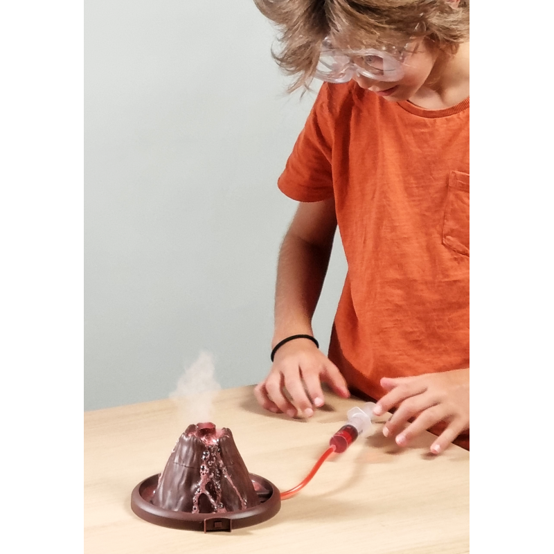 Continut: vulcan electronic, țeavă, seringă, model de vulcan, 60g de sodiu, 50g de acetat de sodiu, colorant roșu (10 ml), colorant albastru (10 ml), pudră de slime (7g), hârtie pH, recipient mare, 2 recipiente mici , pahar cu capac, spuma de protectie, cana dozatoare 100 ml, 2 sticle, lingura dozatoare, tub vortex, agitatoare (x2), hârtie de filtru, pipetă, matriță pentru aisberg, pâlnie, meteorit efervescent, simulator de cutremur, 40 de cărămizi, figurină Leo, tub, oglindă, ochelari de protecție, ghid pentru nori, poster cu harta lumii și 1 instrucțiuni ilustrate.