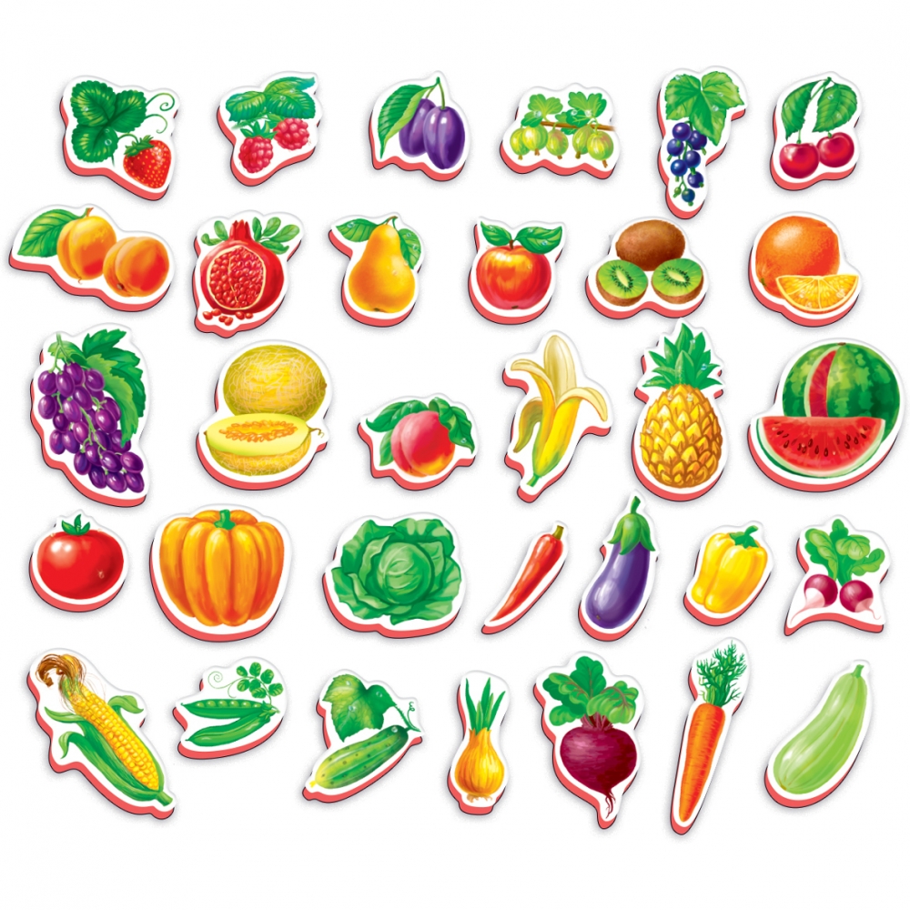 Setul tematic de magneti va familiariza copilul cu fructele si legumele