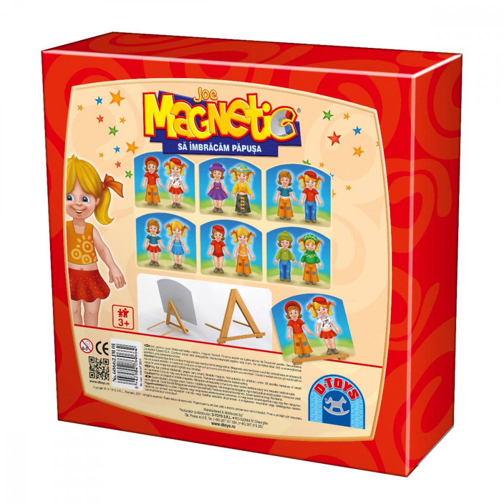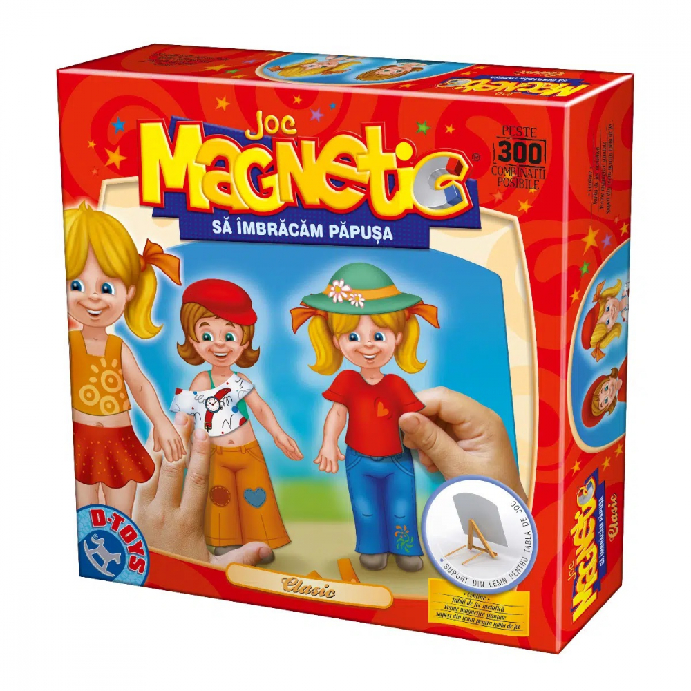 Copiii sunt invitați să-și demonstreze creativitatea realizând cele mai frumoase costumații pentru păpușile superbe cu ajutorul pieselor magnetice incluse.