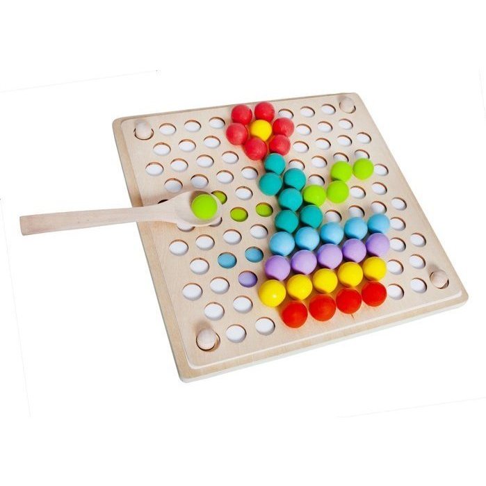 Joc educativ pentru motricitate fina si sortare, mozaic cu bile din lemn