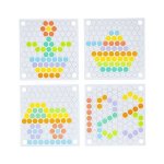 Setul include exemple de imagini care pot fi create din elementele incluse in set. Copilul se va distra aranjand bilele colorate pentru a crea diferite imagini