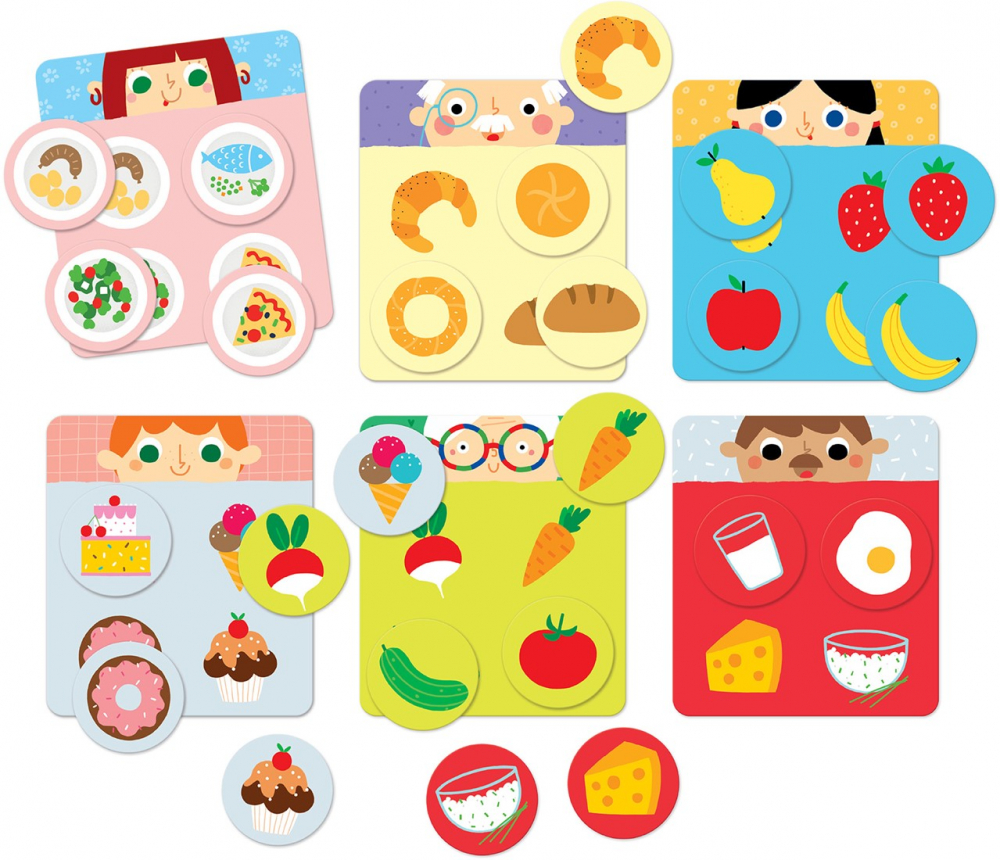 Puteți: sa jucati un joc clasic de bingo (potriviti jetoanele de mancare si bauturi la tabele), sa experimentati cu cele 30 de idei de jocuri (de exemplu, sa incurajati copilul sa arate si sa numeasca alimente diferite, sa jucati un joc de ghicitori cu un copil, sa incurajati copilul sa gateasca putin cu tine, foloseste ilustratiile pentru un joc de articulare si multe altele) sau introduce-ti propriile reguli si bucura-te de jocul „delicios”.