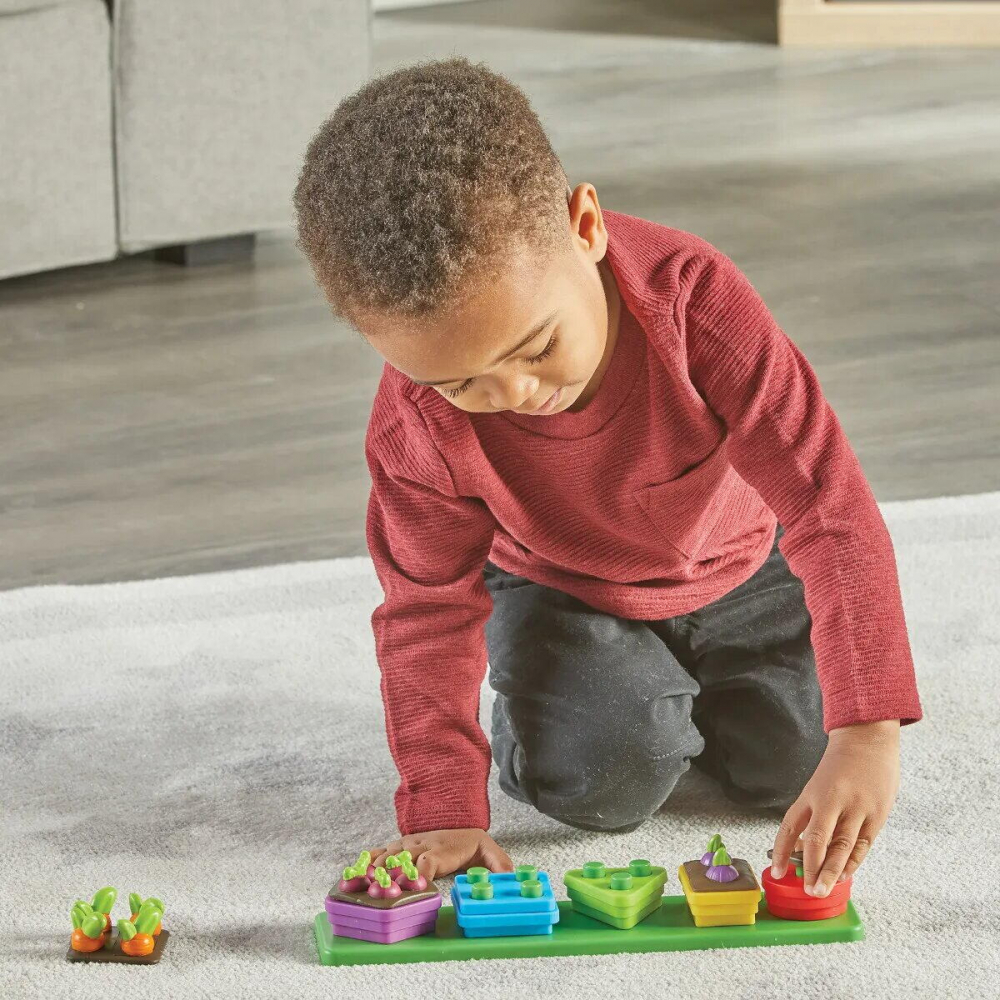 • Pe masura ce copiii potrivesc, asaza si stivuiesc formele si plantele, isi dezvolta abilitati motorii fine esentiale, cum ar fi forta de prindere, dexteritatea si coordonarea mana-ochi