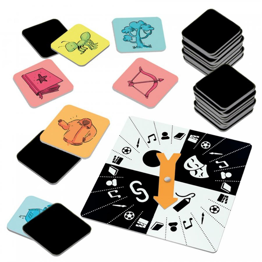 Setul include: 72 de carti de inspiratie; 1 rotita; 1 placa mare, 1 placa mica; 1 marker de aters; 1 tabel de punctaj; 1 carte de legenda;