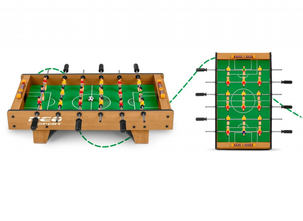 Joc fotbal de masa pentru copii si adulti Neo-Sport 51x29.5x12 cm, 18 jucatori, 2 mingi, manere ergonomice antiderapante, cadru solid din lemn