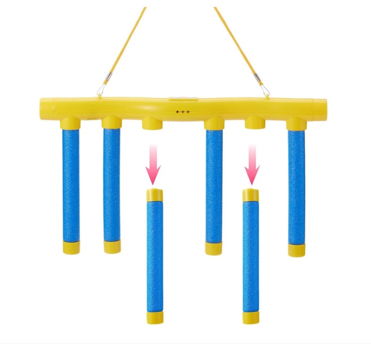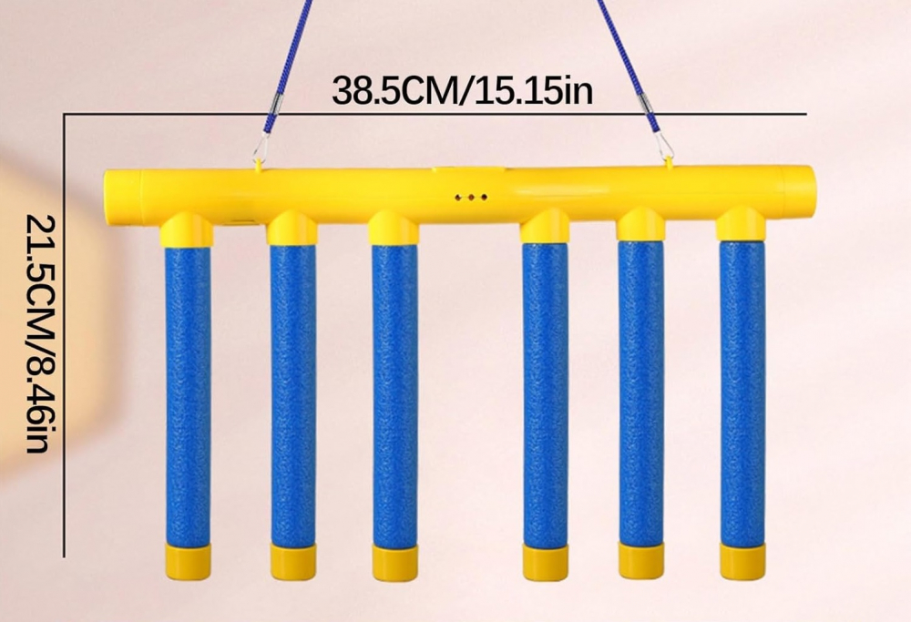 Jocul consta dintr-o bara orizontala principala de care sunt suspendate mai multe tuburi/bete verticale .