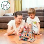 Joc labirint pentru copii, Malplay, tip montessori, din lemn, cu elemente mobile, animalute, abac incorporat, 35 de margele colorate, dimensiune 22 x 14.7x 20.3 cm