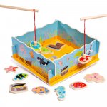 copilasii se vor distra pe cinste in timp ce vor apuca pestisorii cu undita si apoi o data ce acestia sunt prinsi bine ii vor putea lasa in jos in cutia din lemn in forma de ocean