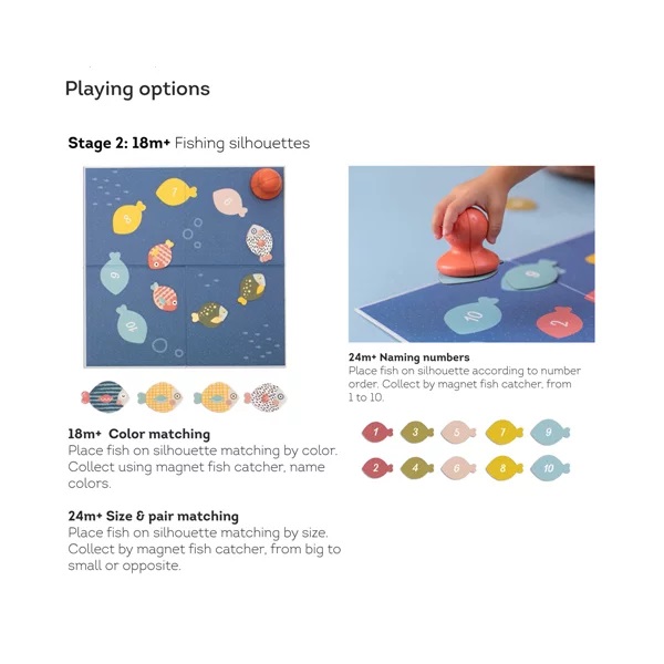 2. Etapa 2 – 18 luni+: Cereti copilului mic sa gaseasca pestele potrivit si colectati cu ajutorul unui magnet.
