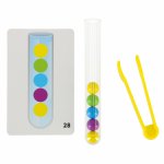 * Scopul principal al jocului este de a sorta bilele in eprubete corespunzatoare ! Copilul poate face acest lucru folosind mainile sau clestele inclus!