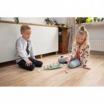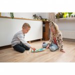 Dimensiuni: tabla de joc 35x12x25 cm; 7 iepurasi; 7 vulpi; 1 zar 3 cm;