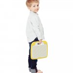 Jocul este alcatuit dintr-o plansa perforata ce poate fi pozitionata si orizontal si vertical, potrivindu-se pe tavita cu piese tip ,,peg’’ la fel ca o rama de tablou, astfel incat opera celui mic sa poata fi admirata in toata frumusetea ei! In cutia speciala cu maner, piesele ,,peg’’ pot fi usor depozitate si transportate.