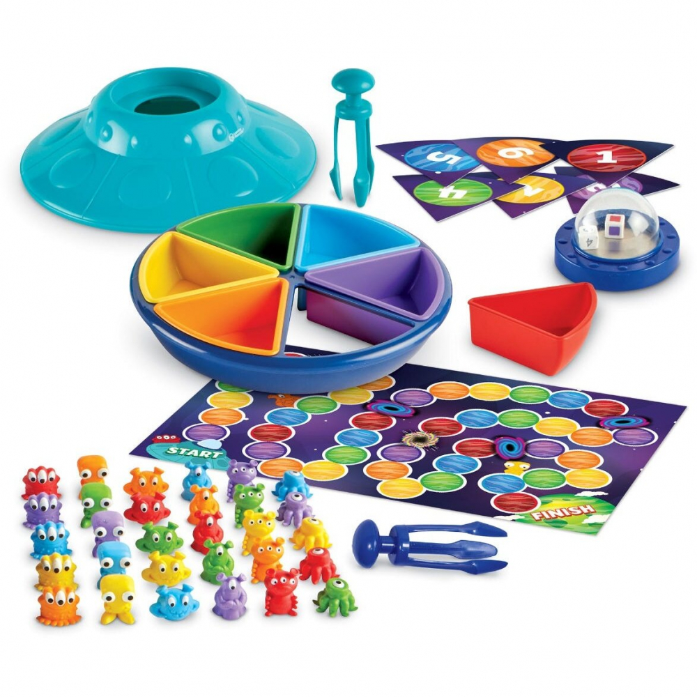 - folosind penseta cu cupe in capete pentru a apuca extraterestrii, cei mici isi vor dezvolta motricitatea fina