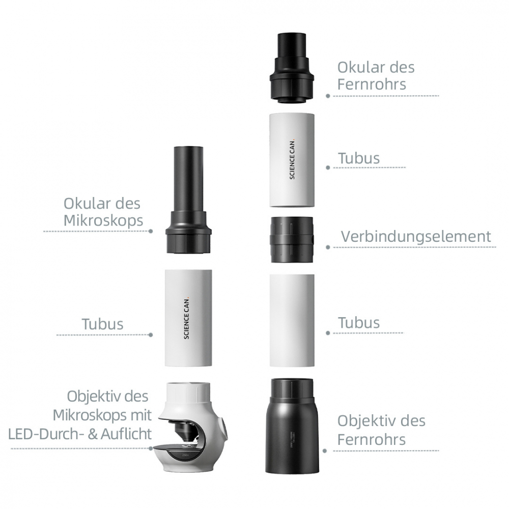 O singură jucărie - 2 posibilități: Combină cele două dispozitive optice complexe, de înaltă rezoluție și de calitate excelentă.