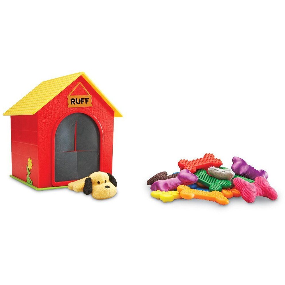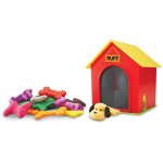 setul include 20 de oase cu diferite texturi (neted, matasos, cu nervuri, fosnitor, cauciucat etc.) depozitate intr-o casuta de plastic