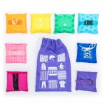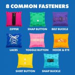 • o parte a fiecarui saculet prezinta o ilustratie a unui articol vestimentar sau a unei incaltari, iar cealalta parte are sistemul real de prindere corespunzator, cum ar fi fermoar, nasturi, capse sau siret