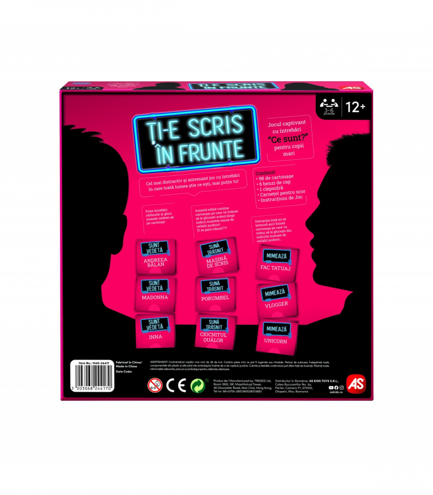 Ti-e scris in frunte un joc istet si distractiv, in care jucatorii au pe frunte un cartonas ilustrat si trebuie sa ghiceasca cuvantul cu ajutorul intrebarilor adresate adversarilor.