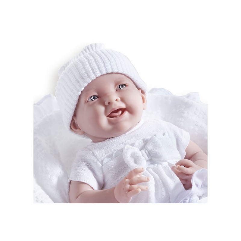 Jucarie bebelus 39 cm cu trusou alb si suzeta cu etui si biberon este o jucarie foarte bine realizata, ideala pentru orice copil datorita design-ului care pune accent mai ales pe siguranta. Vinilul fin din care este confectionata aceasta papusa, este foarte rezistent la loviturile si zgarieturile ce pot aparea in timpul jocului. Bebelusul este imbracat cu un costumas foarte dragut dintr-un material delicat care imita hainutele unui copil real. Pe langa costumas, papusa mai are o paturica rotunda, un biberon, o suzeta si un suport pentru aceasta.