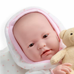 Jucarie Bebe fetita 43 cm costum vara roz si paturica este o jucarie foarte bine realizata, ideala pentru orice copil datorita design-ului care pune accent mai ales pe siguranta. Vinilul fin din care este confectionata aceasta papusa, este foarte rezistent la loviturile si zgarieturile ce pot aparea in timpul jocului. Dragalasa papusa are un costumas alb cu stelute roz, o paturica cu acelasi imprimeu, o jucarie ursulet din plus, o jucarie zornaitoare, o suzeta si un biberon. Expresia de pe fata bebelusului este incantatoare, aducand un zambet oricarei persoane care il priveste.