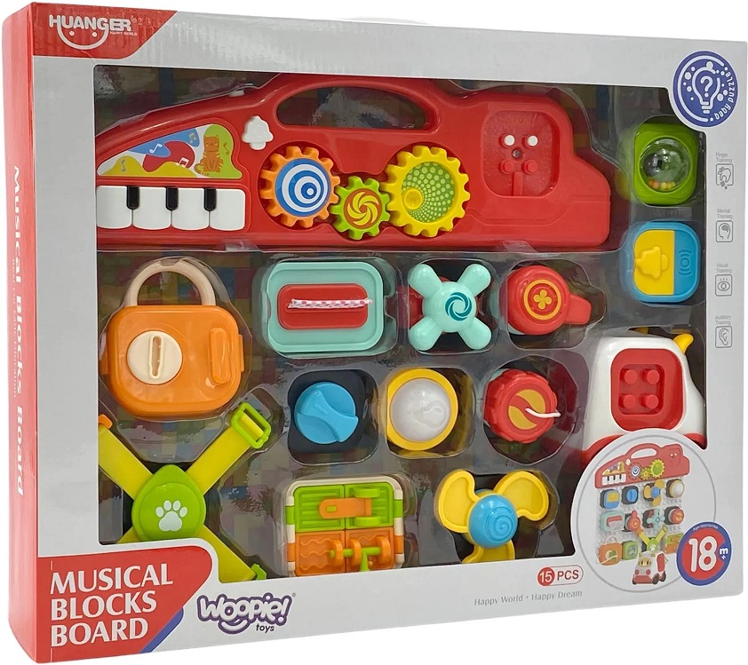 Acest Busy Board multifunctional in forma de masinuta este conceput pentru a stimula curiozitatea si dezvoltarea abilitatilor cognitive ale copiilor.