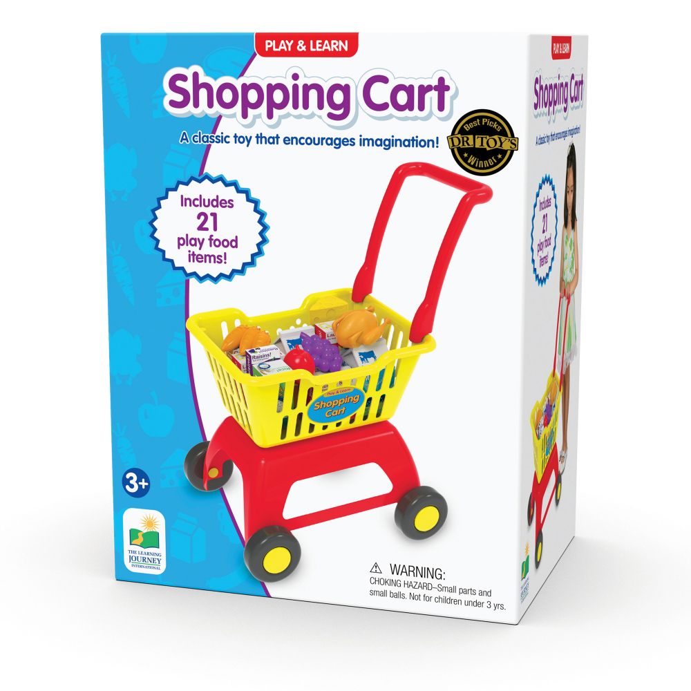 Jucaria Carucior de Cumparaturi de la Learning Journey este o jucarie clasica care dezvolta imaginatia si incurajeaza jocul de rol. Cu mai mult de 20 de piese de accesorii alimentare, copilul tau va putea selecta o gama de produse lactate, cereale, carne! Caruciorul colorat este usor de asamblat si impins ajutar de grutatea redusa si rotile mari. Jucaria este recomandata pentru copii cu varsta de peste 3 ani.