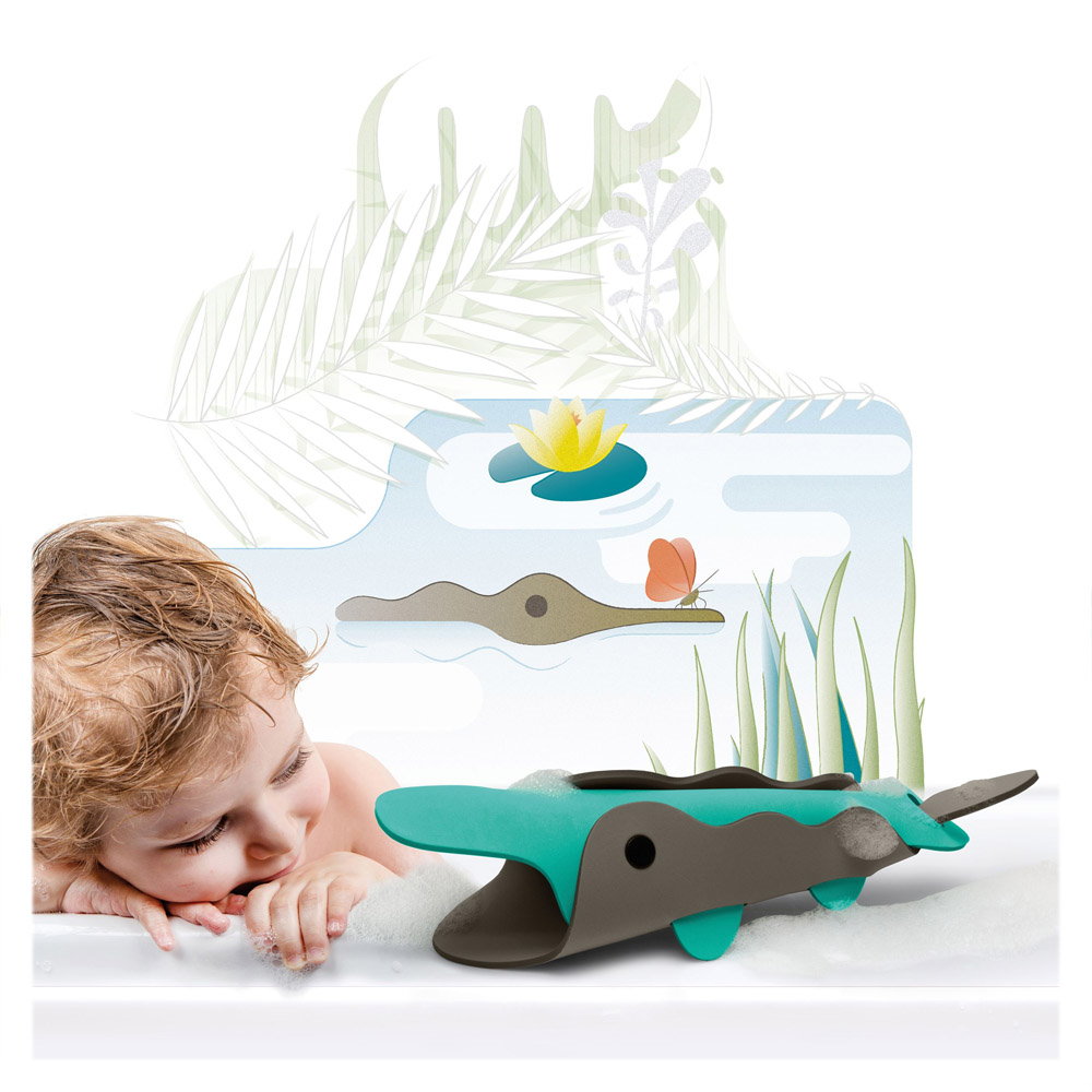 Transforma in distractie timpul de baie al micutului tau, cu setul de baie creativ din spuma moale, Crocodile River, de la Quut Toys!
