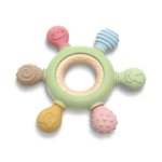 Jucarie de dentitie din silicon si lemn de fag 0 luni+ Rudder Fresh Green