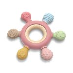 Jucarie de dentitie din silicon si lemn de fag 0 luni+ Rudder Pink