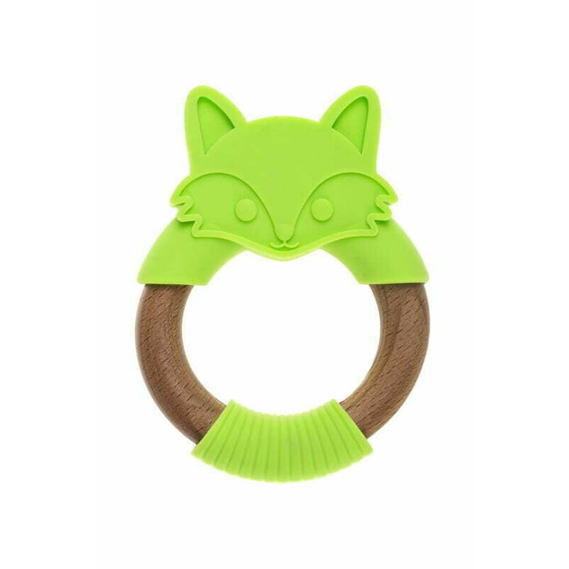Jucarie de dentitie din silicon si lemn Vulpe verde Bocioland