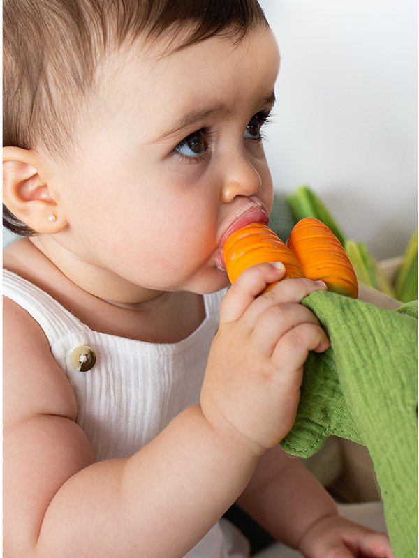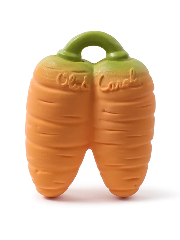 Confecționat din cauciuc natural și pictat manual cu pigmenți non-toxici, morcovelul Cathy este jucăria ideală pentru jocul senzorial, baie și dentiție.