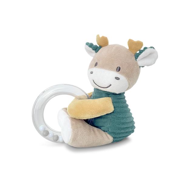 Jucarie de plus Cerb Albastru 11 cm cu inel si bilute zornaitoare 0 luni+