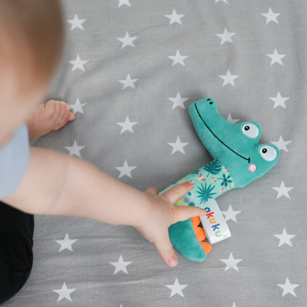 Jucarie de plus cu chitaitoare Akuku Crocodil 14x4 cm