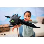 Aceasta jucarie de plus inovatoare prezinta dragonul iconic din Cum sa-ti dresezi dragonul cu detalii fidele filmului, inclusiv plus negru moale cu solzi stralucitori, gheare de pasla si ochi verzi stralucitori brodati.