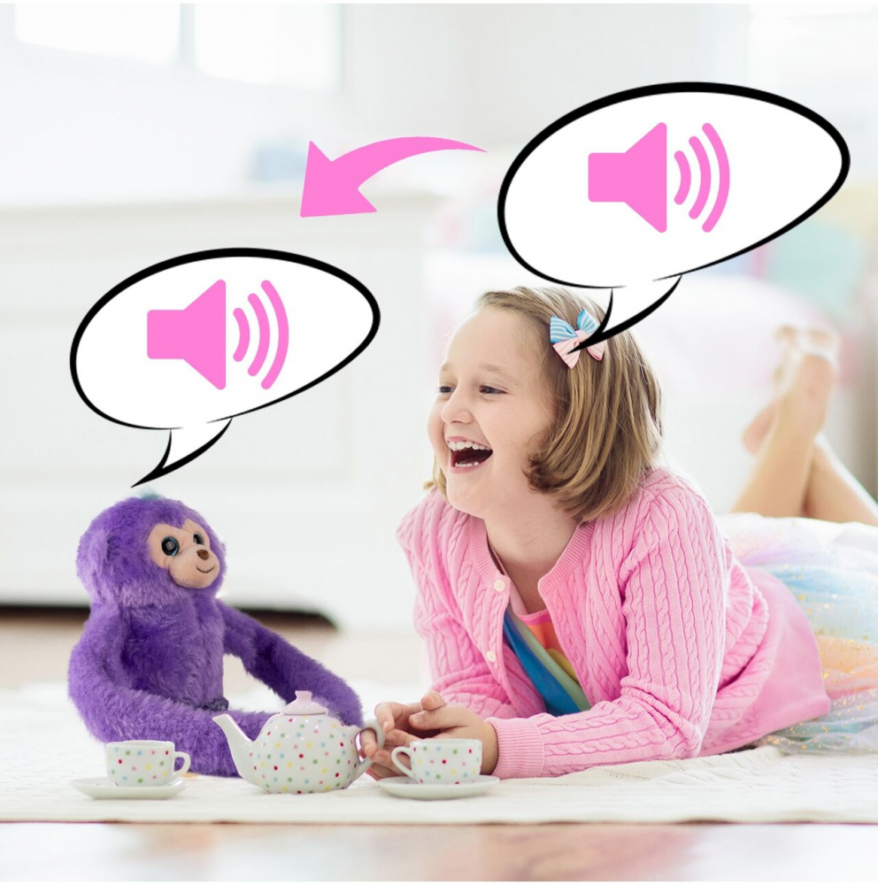 * Vorbeste cu ea si ea iti va repeta cuvintele intr-un mod amuzant, care va aduce rasete si zambete tuturor celor din jurul tau. Maimuta are functia de a inregistra vocea si de a repeta cuvintele auzite.