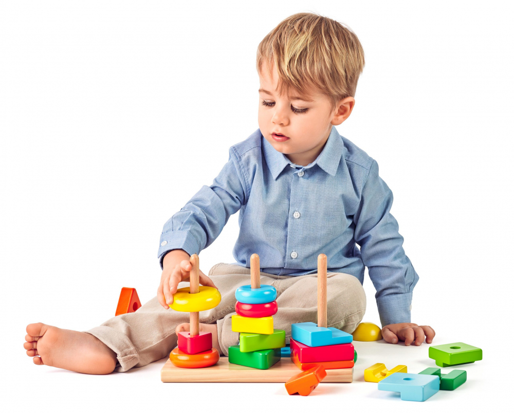 O jucarie didactica din lemn care sustine dezvoltarea gandirii, combinatorii, distingerea culorilor si formelor si a motricitatii fine ale copiilor.