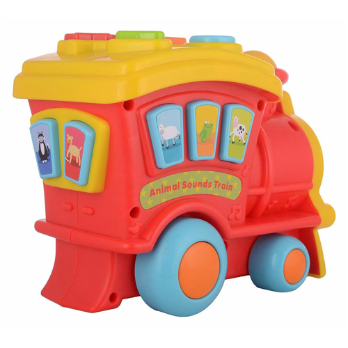 Trage locomotiva dupa tine pentru a scoate sunete. Apasa pe butoane pentru alte melodii acompaniate de lumini.