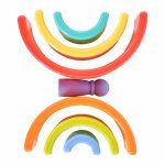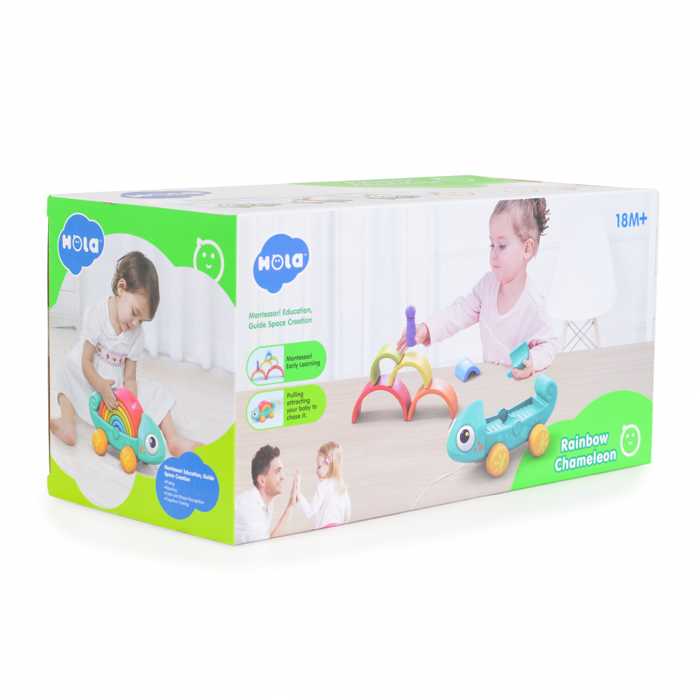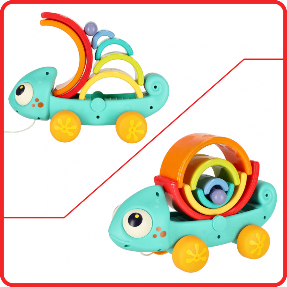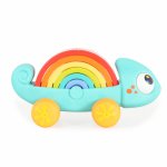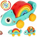 Jucarie de tras Montessori cu joc de stivuire Cameleonul curcubeu