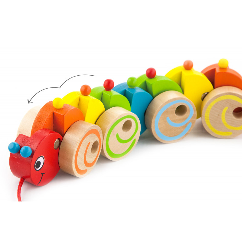 Este foarte usor sa incurajezi copiii mici sa mearga si sa alerge cu un companion precum aceasta omida colorata.