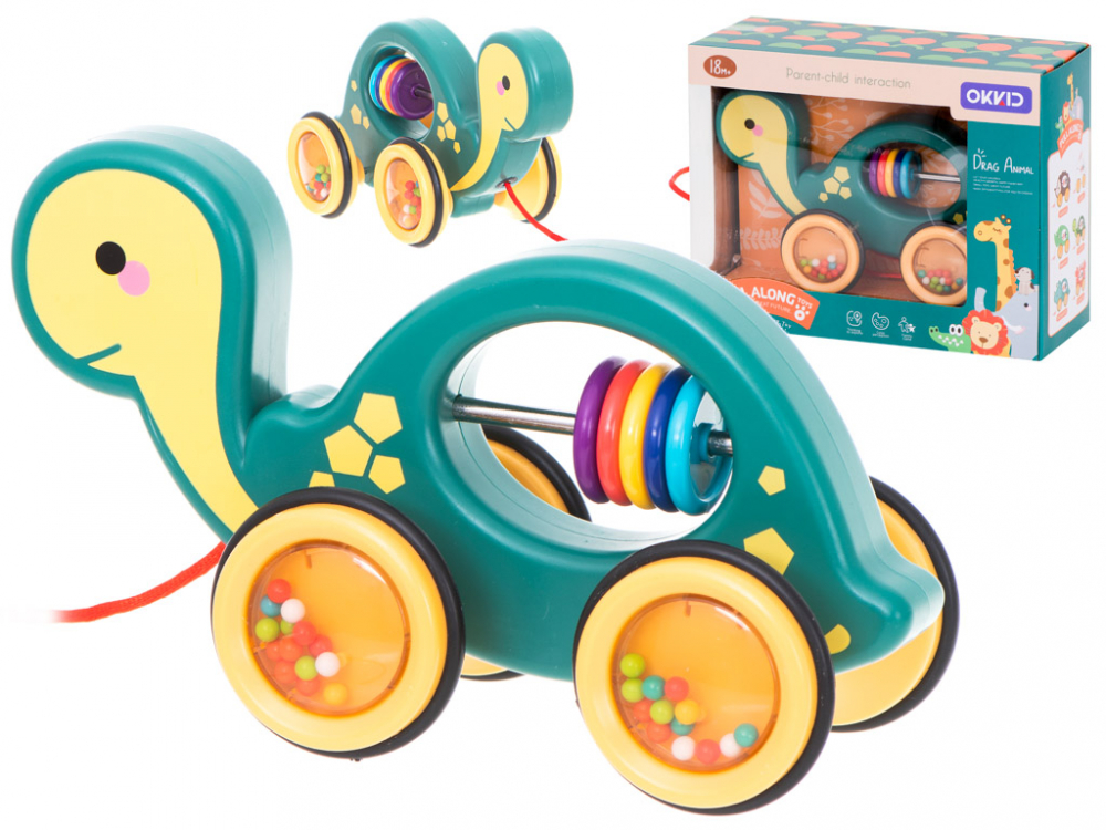 Jucarie de tras pentru copii Ikonka Happy Turtle, dimensiune 19.5 x 9 x 12.5 cm