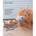 Jucărie 2 în 1: roțile detașabile din lemn îl transformă pe Hubert într-un ursuleț de pluș cu vacă highland moale și îmbrățișabil fără roți.