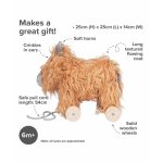 Cu coarnele sale lungi și blana sa texturată și fluidă, Hubert este o jucărie de pluș Highland Cow amuzantă și prietenoasă, în căutare de aventură!