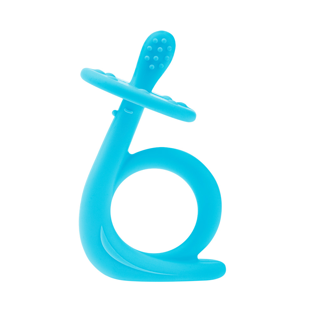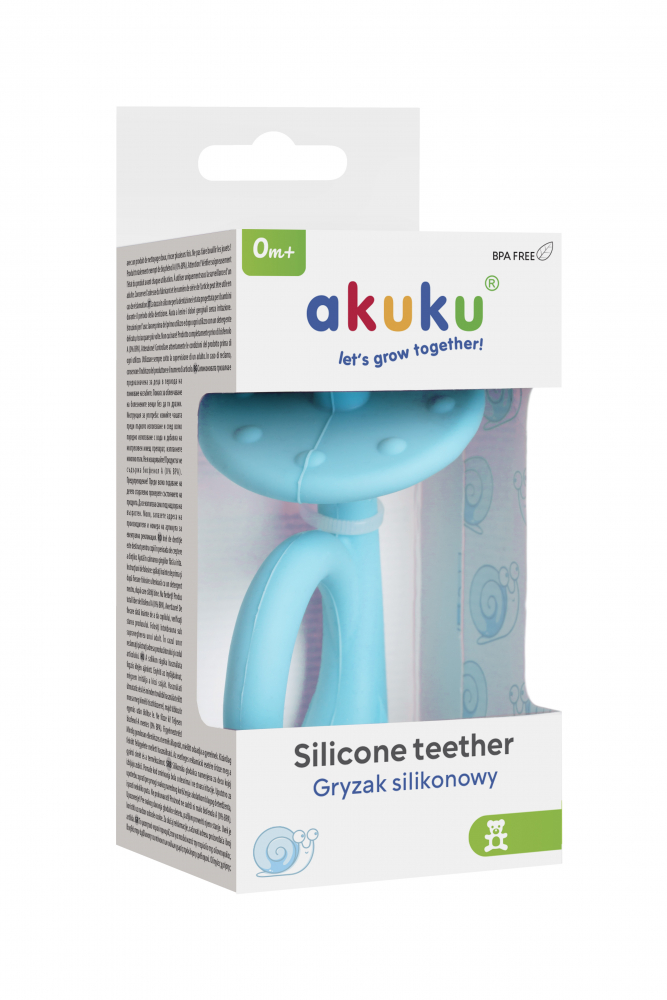 - In perioada de dentitie, o jucarie de dentitie din silicon in forma de melc de la Akuku va ajuta.