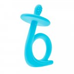 Jucarie dentitie Akuku Melc Albastru, constructia moale din silicon, cu prominente pentru masajul gingiilor, limitator de siguranta, poate fi racit in frigider sau congelator,dimensiune 9,5x7x5 cm