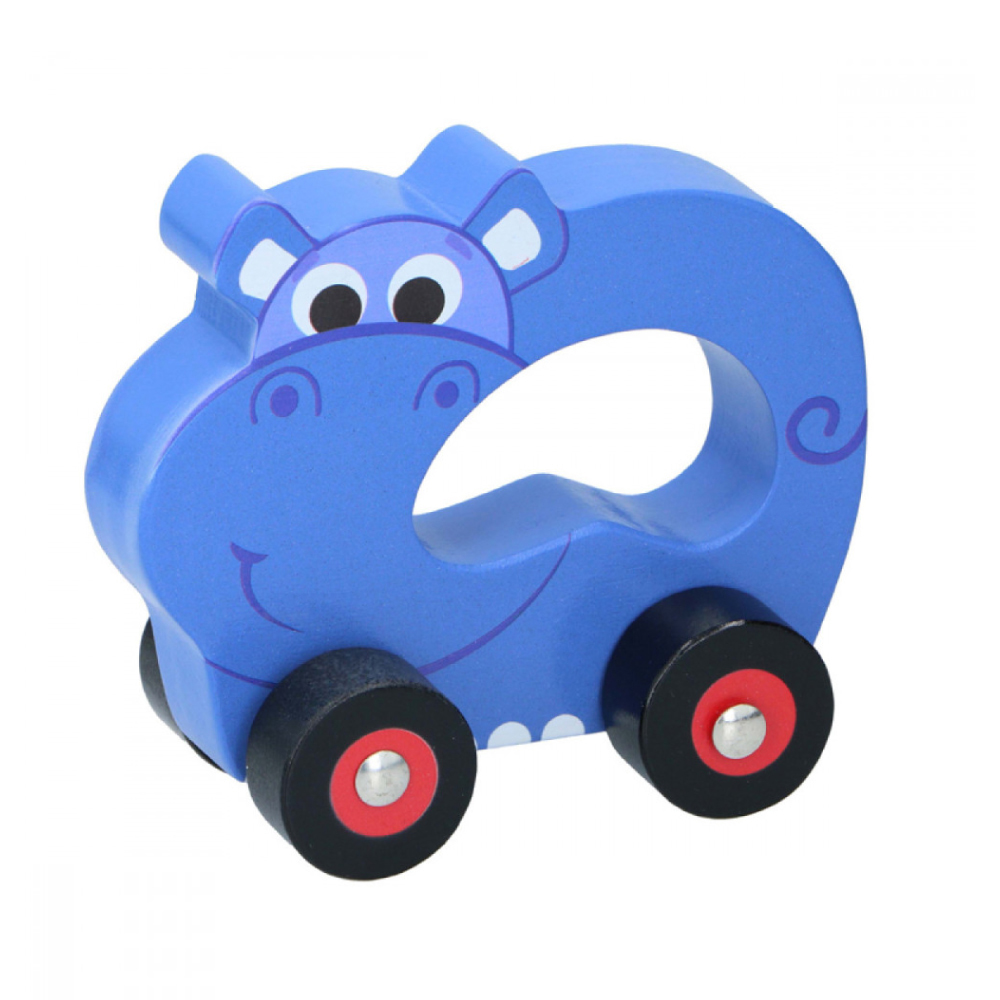 Hipopotamul pe roti poate fi tras si impins, miscarea facand jocul si mai distractiv pentru copii.